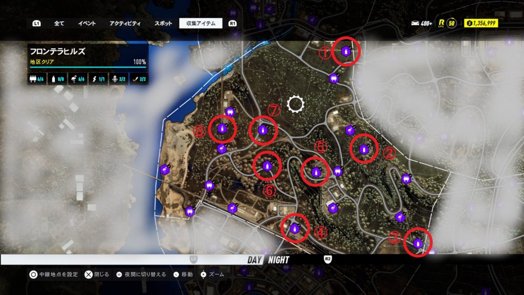トロフィー グラフィティコレクター 獲得のためには、 すべてのストリートアートを収集する必要があります。 ニード・フォー・スピード ヒートでは、 18個の地域に分かれているので地道に進めていきましょう。 【フロンテラヒルズ】 フロン...